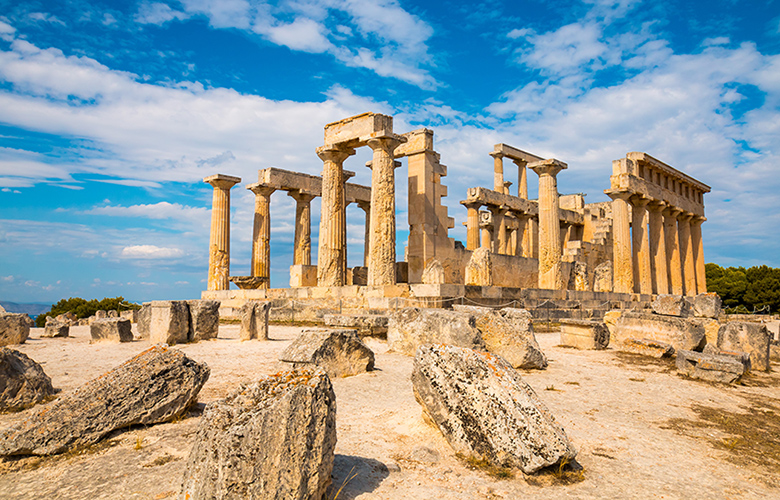 Ναός και μουσείο της Αφαίας. Ο συγκεκριμένος ναός της Αφαίας (δηλαδή της Αθηνάς), βρίσκεται σε ύψος 160 μέτρων στην ανατολική πλευρά του νησιού, 29 περίπου χιλιόμετρα νοτιοδυτικά της Ακρόπολης των Αθηνών. Χρονολογείται γύρω στο 500-490 π.Χ. και σχηματίζει ισοσκελές τρίγωνο με τους αρχαίους ναούς σε Θησείο και Σούνιο. Το μουσείο βρίσκεται εντός του αρχαιολογικού χώρου. Στην είσοδο του, υπάρχει αναπαράσταση του ναού στην αρχική του μορφή. Ανάμεσα στα εκθέματα του βρίσκονται αγάλματα, εργαλεία της εποχής και κεραμικά αγγεία. Το μουσείο φιλοξενεί και ένα μεγάλο μέρος από το αναστηλωμένο αέτωμα του ναού, μέσα από το οποίο διαφαίνεται η τότε μεγαλοπρέπεια της αρχιτεκτονικής αυτής κατασκευής.
