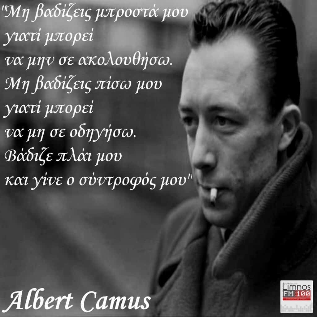 - Μη βαδίζεις μπροστά μου γιατί μπορεί να μην σε ακολουθήσω. Μη βαδίζεις πίσω μου γιατί μπορεί να μη σε οδηγήσω. Βάδιζε πλάι μου και γίνε ο σύντροφός μου.