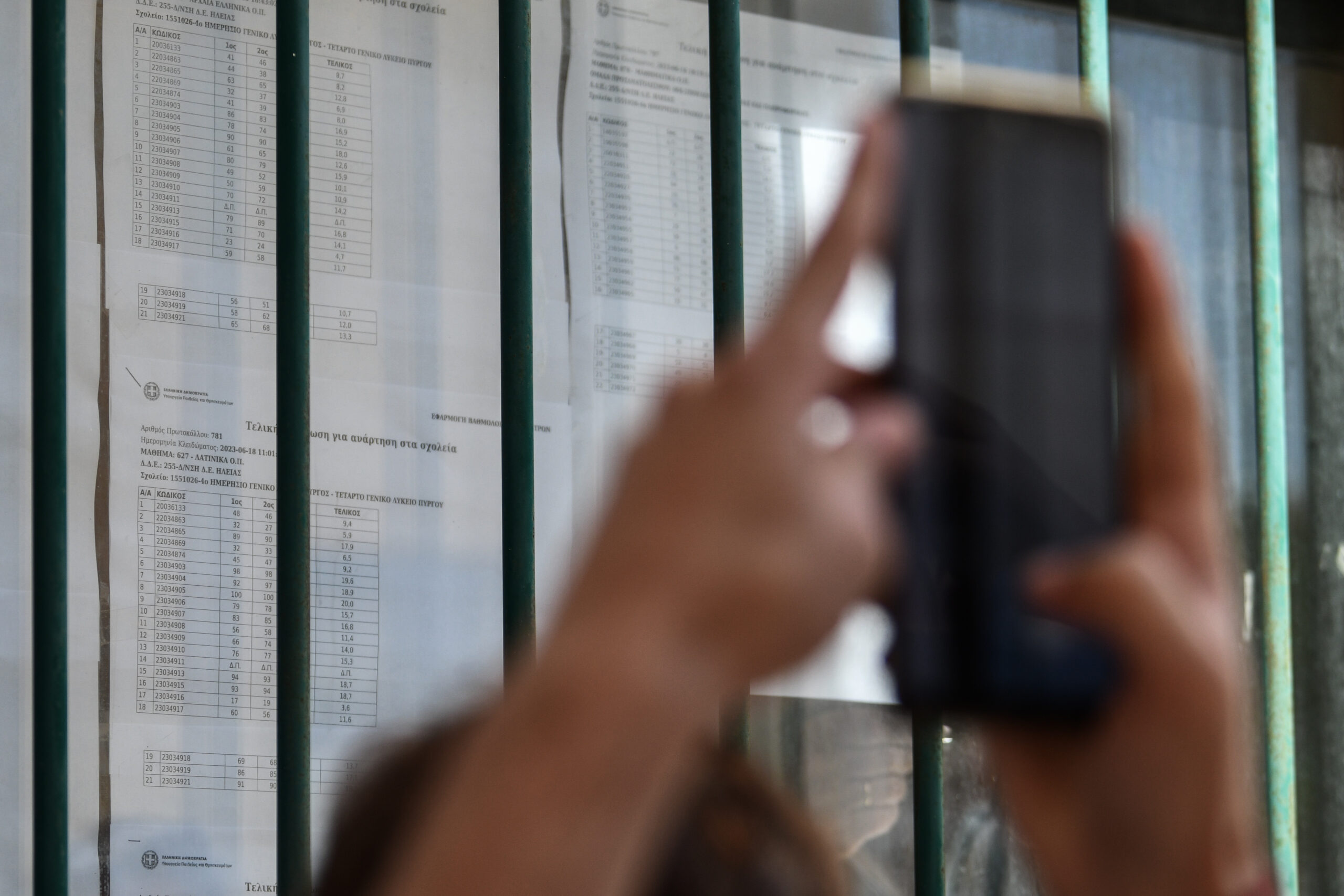 Από το υπουργείο Παιδείας διευκρινίζεται ότι οι καταστάσεις που αναρτώνται στα λύκεια θα περιέχουν μόνο τον κωδικό κάθε υποψηφίου και τα βαθμολογικά του στοιχεία ανά εξεταζόμενο μάθημα και όχι τα ονομαστικά στοιχεία του.