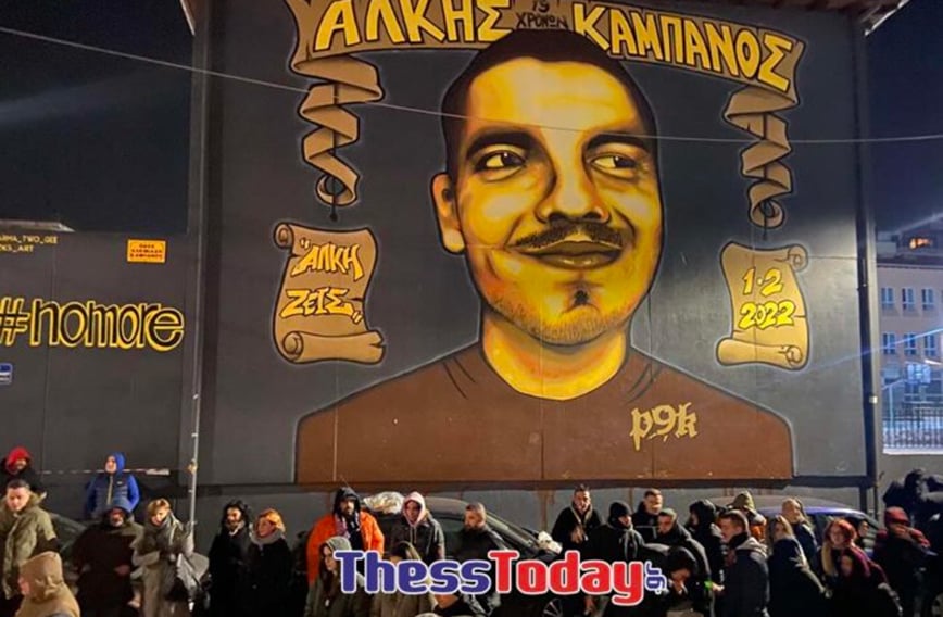 Τη συμβολική κίνηση, που συνοδεύτηκε από την τήρηση ενός λεπτού σιγής, οργάνωσε η Δομή «1ης Φεβρουαρίου 2022 – Εις το Όνομα του Άλκη» στη μνήμη του νεαρού φοιτητή, με αφορμή τη συμπλήρωση δύο χρόνων από τη δολοφονία του, παρουσία του πατέρα του, Αριστείδη Καμπανού και της αδελφής του, Μαρίας.