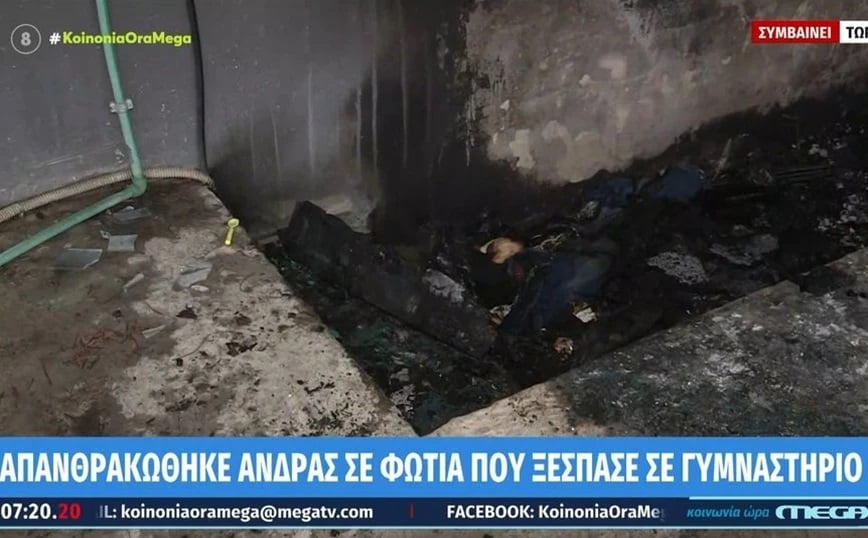 Ένας άνδρας βρέθηκε απανθρακωμένος κάτω από μία σκάλα κατά τη διάρκεια κατάσβεσης πυρκαγιάς στον εξωτερικό χώρο ενός εγκαταλελειμμένου γυμναστηρίου στην οδό Ρήγα Φεραίου στην Καλαμαριά Θεσσαλονίκης.