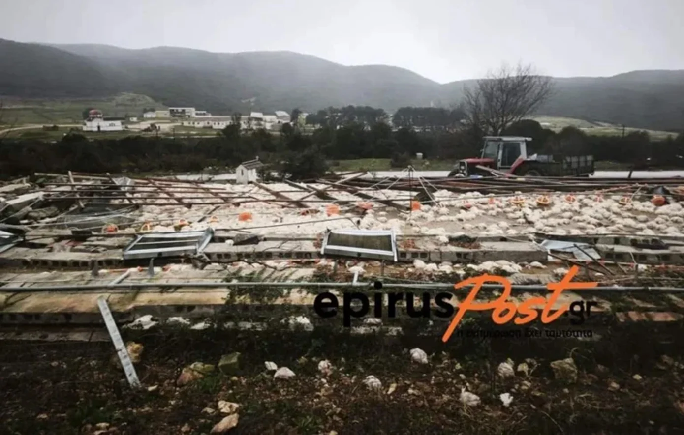 Ειδικότερα, όπως αναφέρει στο ΑΠΕ-ΜΠΕ ο Δήμαρχος Καλπακίου Κώστας Καψάλης, ο ανεμοστρόβιλος ισοπέδωσε τη μονάδα όπου υπήρχαν 30.000 κοτόπουλα. Ο ισχυρός άνεμος ξήλωσε τις στέγες από 3 κτίρια και στην συνέχεια, κατέρρευσαν οι τοίχοι που καταπλάκωσαν τα κοτόπουλα.