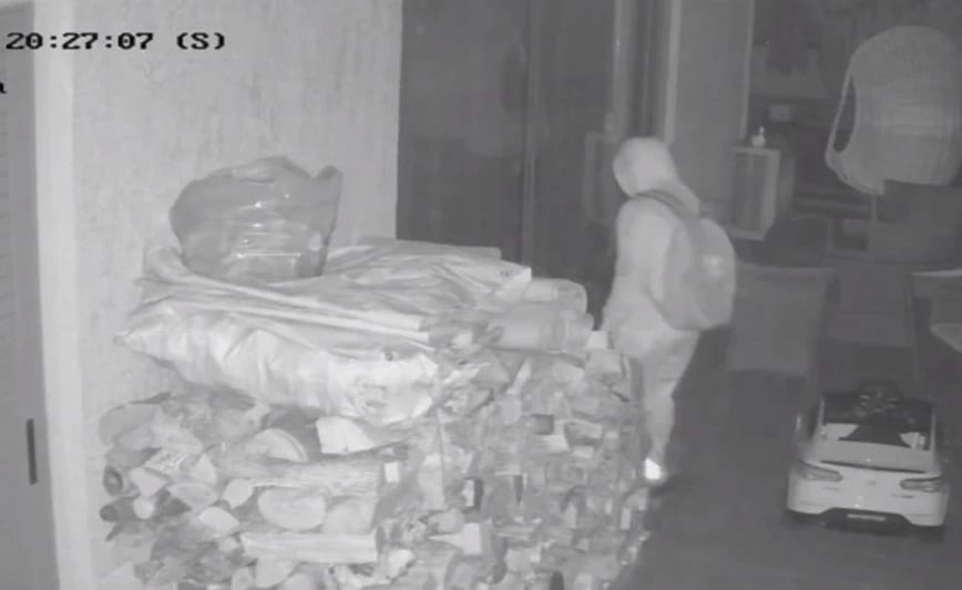 «Αυτή είναι η “καταδρομική” προσπάθεια διάρρηξης του σπιτιού μας χθές το βράδυ στις 20.40. Κάθισε για 20 λεπτά στο σπίτι μας και στις 21.00 έφυγε. Καθόλη τη διάρκεια της κλοπής πολλών πραγμάτων είχε ανοιχτό το κινητό του και μιλούσε με ανοιχτή ακρόαση με κάποιον/κάποια που προφανώς περίμενε έξω από το σπίτι (τσιλιαδόρος).