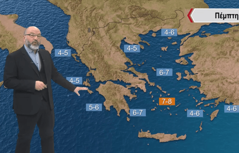 Δυτικοί νοτιοδυτικοί άνεμοι θα πνέουν στα 4 με 5 μποφόρ, κυρίως στα δυτικά, βορειοδυτικά και βόρεια, όσο πιο νότια και κυρίως προς το Κρητικό πέλαγος. Δεν αποκλείεται να φτάσουν τα 7 πολύ πρόσκαιρα και τα 8 μποφόρ εκεί.
