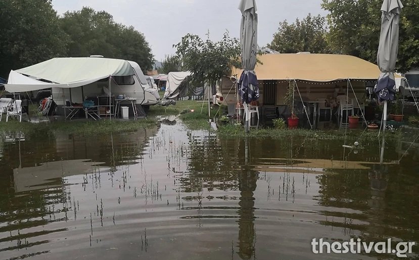 Ένα camping στη Συκιά Χαλκιδικής κοντά στην παραλία πλημμύρισε με το νερό να φτάνει τους 30 πόντους.