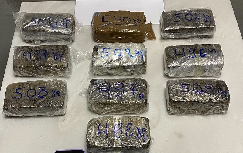 Ακολούθως, με τη συνδρομή αστυνομικού σκύλου ανίχνευσης ναρκωτικών ουσιών της Υποδιεύθυνσης Ασφαλείας Λαμίας, εντοπίστηκαν συνολικά 10 αυτοσχέδιες νάιλον συσκευασίες, επιμελώς κρυμμένες στα πίσω πλαϊνά τοιχώματα των καθισμάτων του οχήματος, οι οποίες περιείχαν ποσότητα ηρωίνης, συνολικού μεικτού βάρους 5 κιλών και 36 γραμμαρίων.