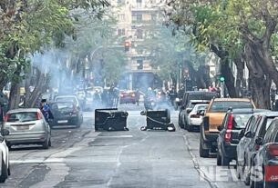 Νωρίτερα το πρωί σημειώθηκε ακόμα ένα τροχαίο ατύχημα στη λεωφόρο Αθηνών όπου ένα αυτοκίνητο εξετράπη της πορείας του και προσέκρουσε σε φανάρι κυκλοφορίας.