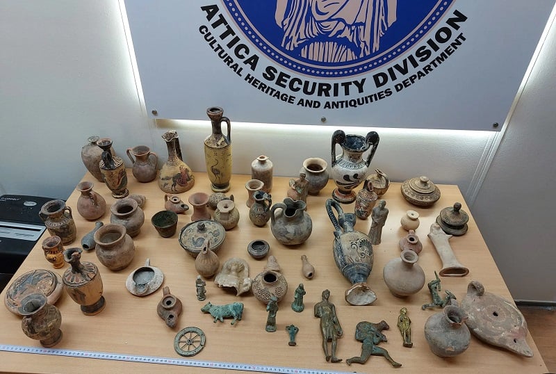 Τα αρχαία αντικείμενα μεταφέρθηκαν από κλιμάκιο αστυνομικών στην έδρα της υπηρεσίας και εξετάσθηκαν από αρχαιολόγο της Εφορείας Αρχαιοτήτων Δυτικής Αττικής, η οποία γνωμάτευσε ότι μέρος αυτών εμπίπτουν στις προστατευτικές διατάξεις του νόμου περί Προστασίας Αρχαιοτήτων, ενώ τα υπόλοιπα χρήζουν περαιτέρω διερεύνησης.