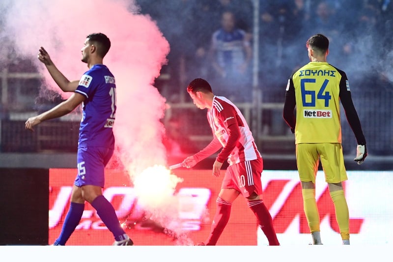 Καθίσματα και φωτοβολίδες έπεσαν στον αγωνιστικό χώρο στο 15ο λεπτό της αναμέτρησης