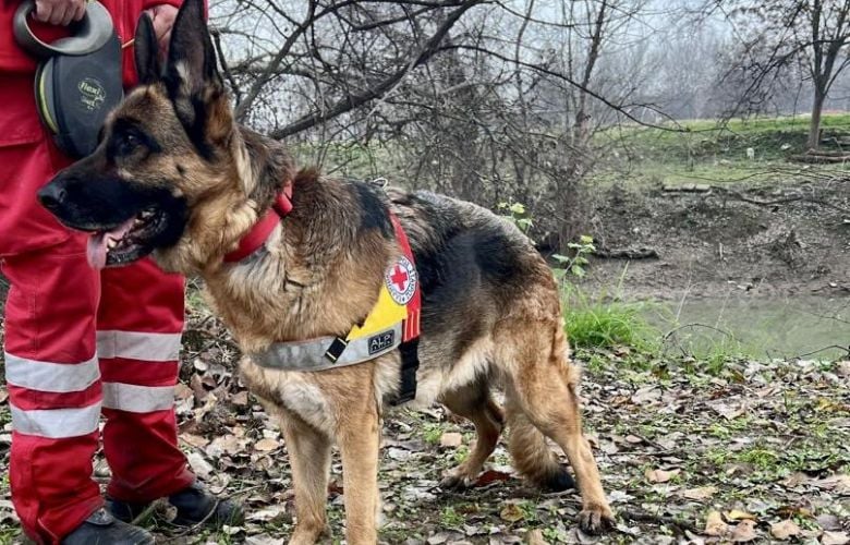 Παράλληλα, στις χερσαίες έρευνες, συμμετέχουν δύο (2) διασωστικά σκυλιά της Κυνοφιλικής Ομάδας Έρευνας και Διάσωσης (Κ-9) του Ε.Ε.Σ. καθώς και πεζοπόρα κλιμάκια εθελοντών Σαμαρειτών- Διασωστών του Ε.Ε.Σ. από την Λάρισα και την Κομοτηνή.
