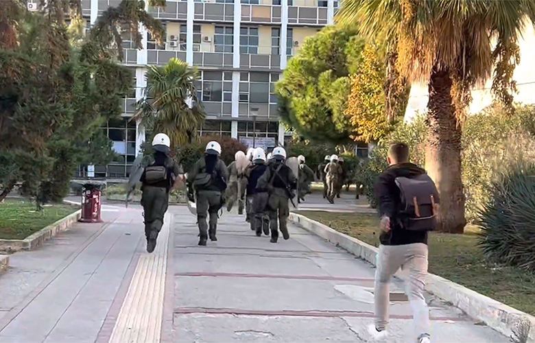 Επιχείρηση για την εκκένωση του κυλικείου της Ιατρικής Σχολής του ΑΠΘ που είχε καταληφθεί τις προηγούμενες ώρες πραγματοποιήθηκε το απόγευμα από την ΕΛ.ΑΣ.