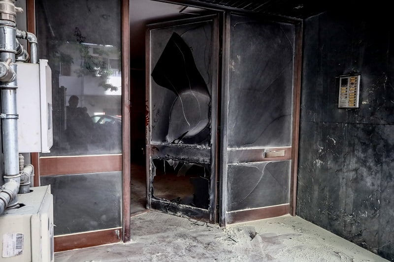 Επίθεση με γκαζάκια πραγματοποίησαν άγνωστοι τα ξημερώματα του Σαββάτου στην είσοδο πολυκατοικίας στα Ιλίσια.