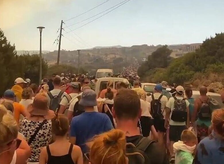Σε βίντεο που αναρτήθηκε στο Instagram φαίνονται πολλοί άνθρωποι να απομακρύνονται με τα πόδια ενώ ο ουρανός από τους πυκνούς καπνούς έχει αλλάξει χρώμα,