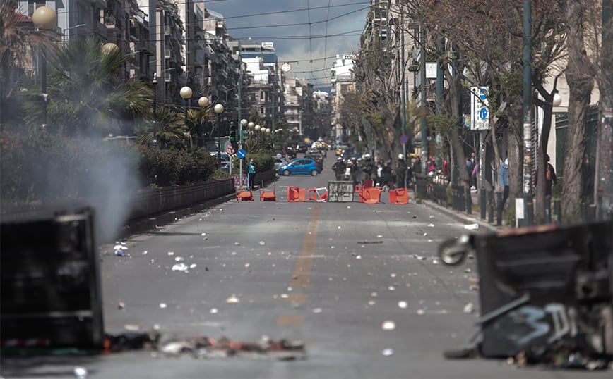 Ομάδα περίπου 20 ατόμων έβαλε φωτιές σε κάδους και έστησε οδοφράγματα στην Πατησίων. Λόγω της έντασης έχει κλείσει ο δρόμος και στα δύο ρεύματα.