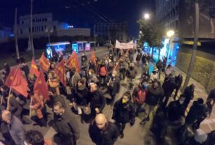 Παράλληλα, την ίδια περίπου ώρα, άλλη ομάδα ατόμων, με καλυμμένα τα χαρακτηριστικά του προσώπου τους, βγήκε από το Οικονομικό Πανεπιστήμιο Αθηνών στην οδό Πατησίων και τοποθέτησε κάδους και άλλα αντικείμενα στο οδόστρωμα, στα οποία έβαλαν φωτιά, διακόπτοντας κατ’ αυτόν τον τρόπο την κυκλοφορία των οχημάτων.