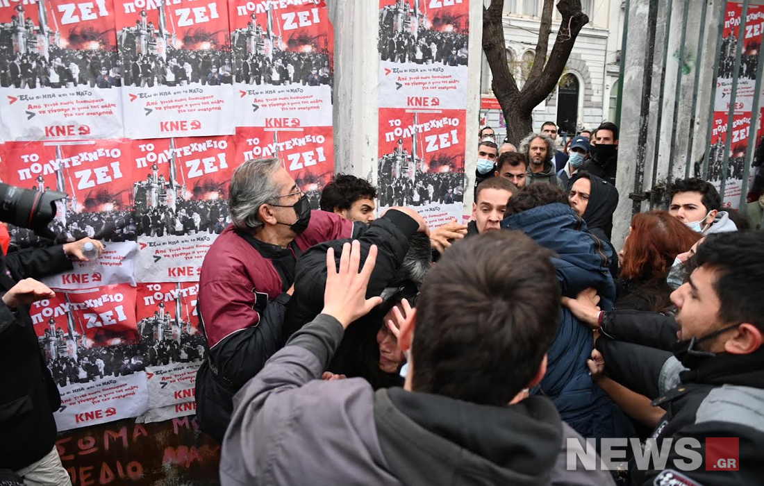 Ένταση επικράτησε και νωρίς το πρωί στο Πολυτεχνείο όταν ομάδα συγκεντρωμένων δεν επέτρεψε την είσοδο της Διακοινοβουλευτικής Επιτροπής στον προαύλιο χώρο για να καταθέσει στεφάνι.