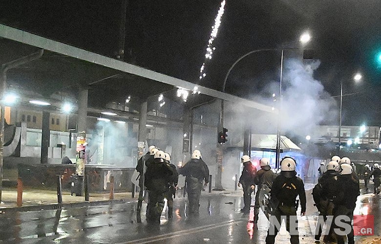 Συγκεκριμένα, υπήρξε ένταση και κυνηγητό μεταξύ διαδηλωτών και δυνάμεων της Αστυνομίας, ενώ εκτοξεύτηκαν φωτοβολίδες και πέτρες. Η οδός Λιοσίων έκλεισε, ενώ στη περιοχή βρίσκονται αστυνομικές δυνάμεις.