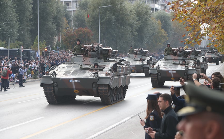 Στην παρέλαση πήραν μέρος νέα συστήματα, όπως είναι τα Tεθωρακισμένα Οχήματα Mάχης (ΤΟΜΑ) Marder 1A3, τα πρώτα της σειράς που παραλαμβάνει η Ελλάδα αυτές τις ημέρες, αλλά και τα νεοπακτηθέντα γαλλικά μαχητικά αεροσκάφη 4++ Γενιάς Rafale EG και Rafale DG.
