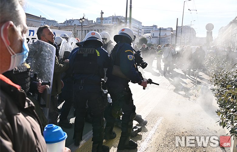 Στη συγκέντρωση έγινε χρήση χημικών από τα ΜΑΤ για να απωθηθούν οι συμμετέχοντες που ήθελαν να κλείσουν την οδό Πανεπιστημίου.
