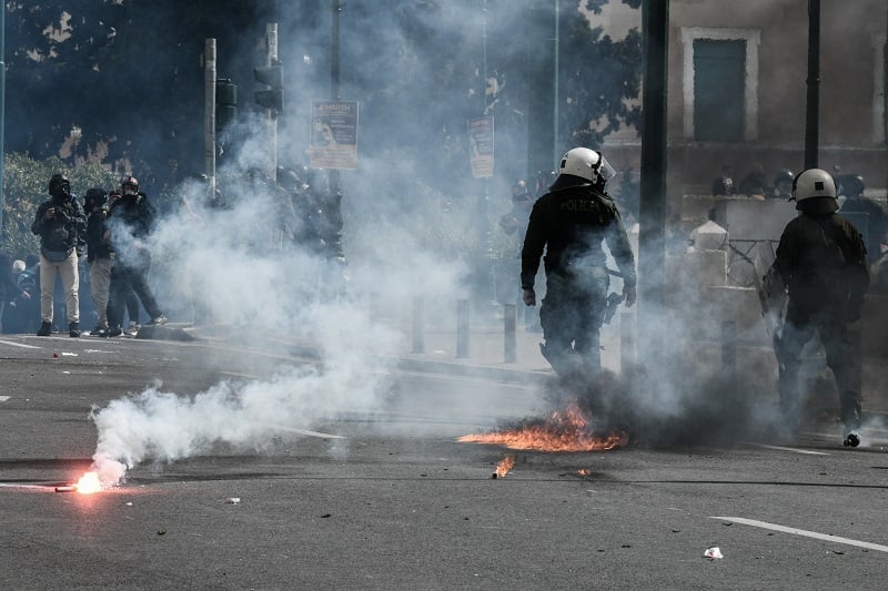 Επεισόδια ξέσπασαν λίγο μετά τις 12:30 στην πλατεία Συντάγματος όπου χιλιάδες άνθρωποι συμμετείχαν στο συλλαλητήριο διαμαρτυρίας για την σιδηροδρομική τραγωδία στα Τεμπη.
