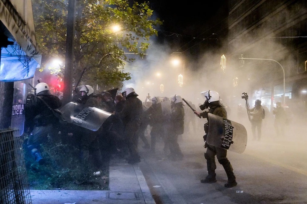 Σύμφωνα με την ΕΛΑΣ, περίπου στις 8 το βράδυ στη συμβολή των οδών Πανεπιστημίου και Εμμανουήλ Μπενάκη μια ομάδα περίπου 400 ατόμων που συμμετείχαν στην πορεία επιτέθηκαν σε διμοιρίες των ΜΑΤ, που απάντησαν κάνοντας χρήση χημικών.