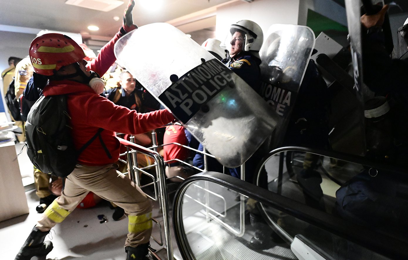 Την Πέμπτη σημειώθηκαν βίαια επεισόδια στο υπουργείο Κλιματικής Κρίσης μεταξύ των εποχικών πυροσβεστών και των δυνάμεων των ΜΑΤ, ενώ έγιναν τουλάχιστον 4 προσαγωγές. Οι αστυνομικές δυνάμεις έριξαν και δακρυγόνα μέσα στο κτίριο προκειμένου να καταστείλουν τις ενέργειες των πυροσβεστών και να εκκενώσουν την κατάληψη.