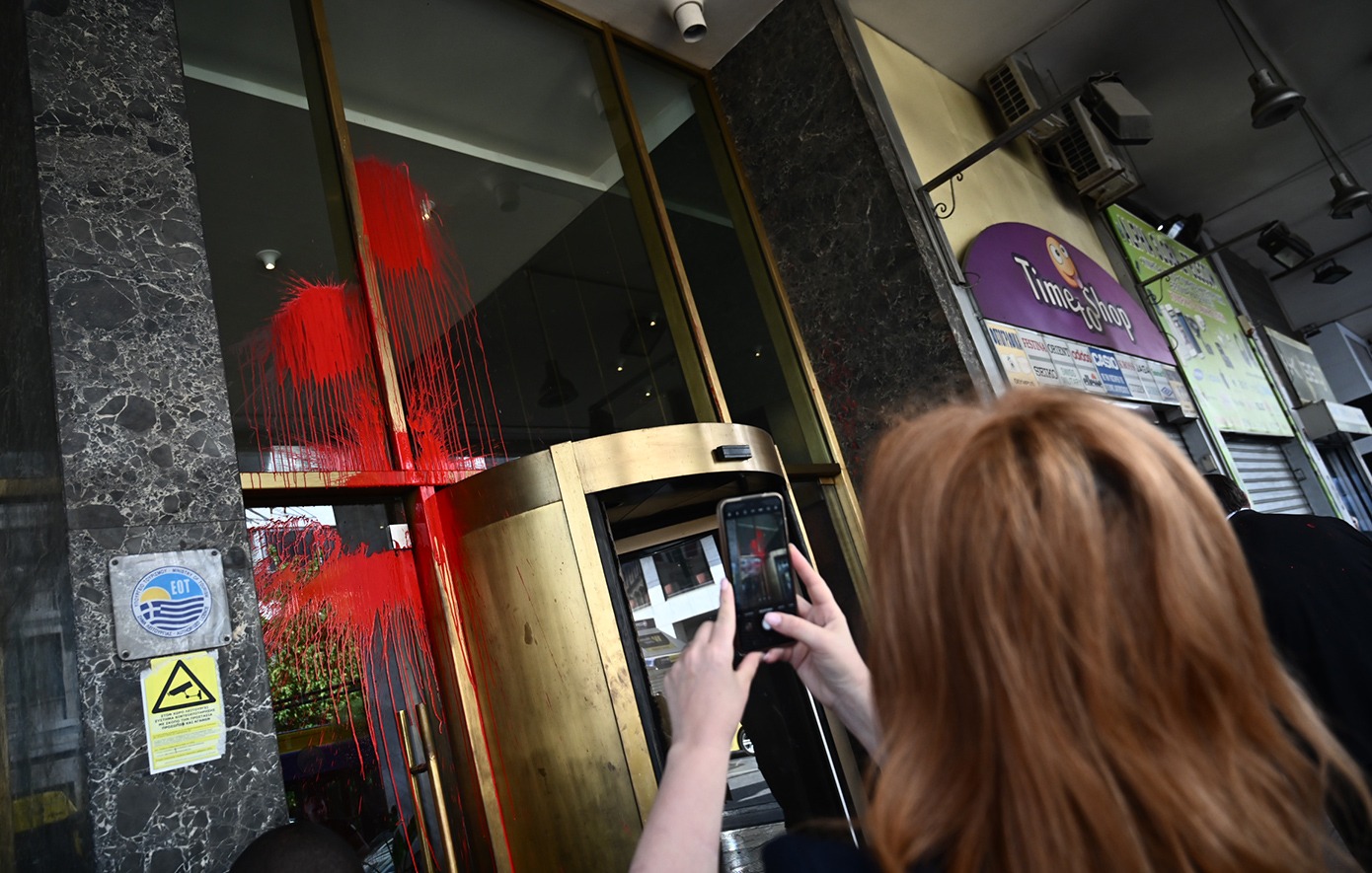 Επίθεση με μπογιές σημειώθηκε νωρίτερα σήμερα σε ξενοδοχείο στην Ομόνοια, όπου πραγματοποιείται συνέδριο με θέμα την ενίσχυση της συνεργασίας μεταξύ Ελλάδας – Ισραήλ.