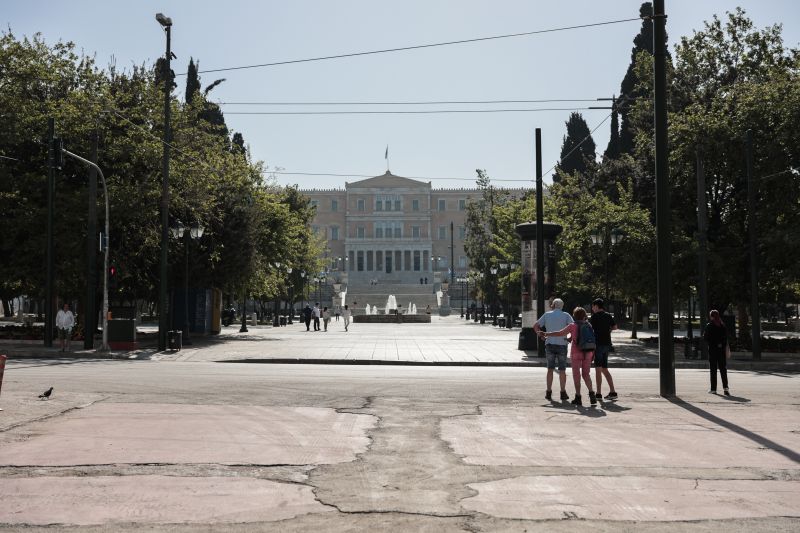 Μόνοι κάποιοι τουρίστες περπατούν μόνοι τους στο Σύνταγμα και την Ομόνοια