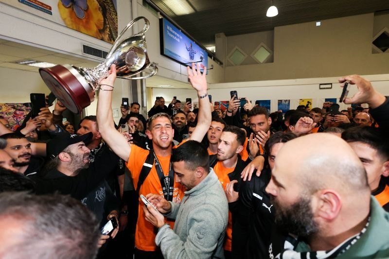 Όταν οι ποδοσφαιριστές και το τεχνικό επιτελείο εμφανίστηκαν στον χώρο αφίξεων, επικράτησε πραγματικός παροξυσμός. Οι φίλοι του ΟΦΗ μετέτρεψαν το αεροδρόμιο σε μια μεγάλη κερκίδα, δημιουργώντας σκηνικό που θύμιζε «Γεντί Κουλέ».