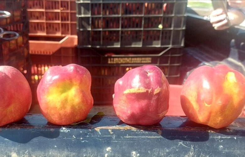 Με την είσοδο στο χωράφι για το «πρώτο χέρι», διαπιστώθηκε ότι ο καρπός ήταν άχρηστος. Πρόκειται για Νεκταρίνια τα οποία δεν μπορούν να πουληθούν, εξηγεί ο Μάριος Δουλγερίδης, παραγωγός,