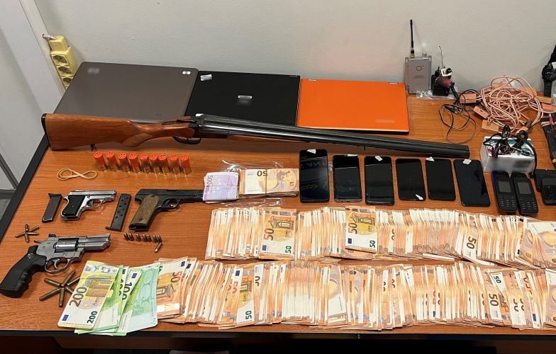 Από τις έρευνες που πραγματοποιήθηκαν σε οικίες, οχήματα, σχολές οδηγών και γραφεία υπαλλήλων, μεταξύ άλλων, βρέθηκαν και κατασχέθηκαν: 86.370 ευρώ, 2 πιστόλια και περίστροφο, 117 εξαρτήματα οπτικοακουστικού εξοπλισμού (μικροκάμερες, ακουστικά «ψείρες», μπλούζες με τοποθετημένο εξοπλισμό σε αυτές κ.α.), 50 κινητά τηλέφωνα, πλήθος υπολογιστών και χειρόγραφων σημειώσεων.