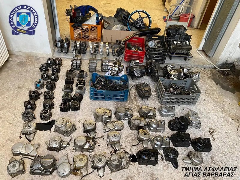 Εξαρθρώθηκε από το Τμήμα Ασφάλειας Αγίας Βαρβάρας συμμορία, τα μέλη της οποίας διέπρατταν κλοπές μοτοσικλετών, παραποιούσαν αριθμούς πλαισίων και κινητήρων σε παράνομο συνεργείο σε περιοχή της Αττικής και πωλούσαν τα μέρη τους αυτούσια ή τμηματικά αποσυναρμολογημένα.