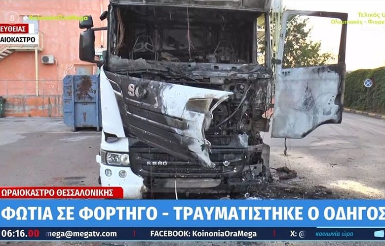 Στις φλόγες τυλίχθηκε τα ξημερώματα της Τετάρτης 29/5 ένα φορτηγό σε πάρκινγκ γνωστού πολυκαταστήματος στη Θεσσαλονίκη.
