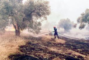 Στο σημείο επιχειρούν 15 πυροσβέστες με 5 οχήματα και εθελοντές. Συνδρομή παρέχουν υδροφόρες ΟΤΑ, μετέδωσε το ΑΠΕ ΜΠΕ.