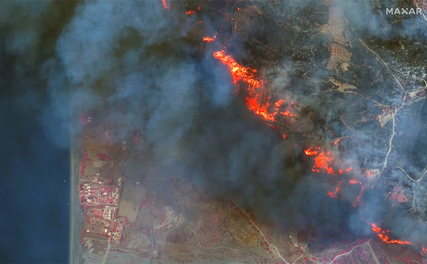 Το έργο της κατάσβεσης καθιστούν δύσκολο οι ισχυροί άνεμοι που πνέουν στην περιοχή.
