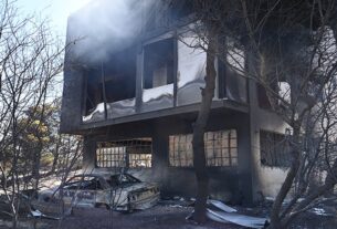 Στο σημείο επιχειρούν ισχυρές δυνάμεις της Πυροσβεστικής.
