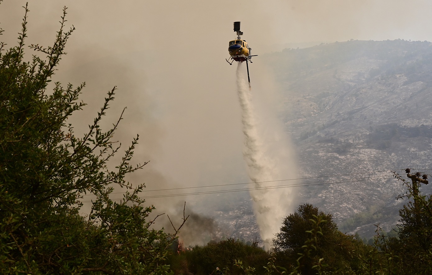 Στην προσπάθεια κατάσβεσης συνδράμουν επίσης εθελοντές, πέντε πυροσβεστικά αεροσκάφη, ένα μηχάνημα έργου και υδροφόρες των Οργανισμών Τοπικής Αυτοδιοίκησης (ΟΤΑ).