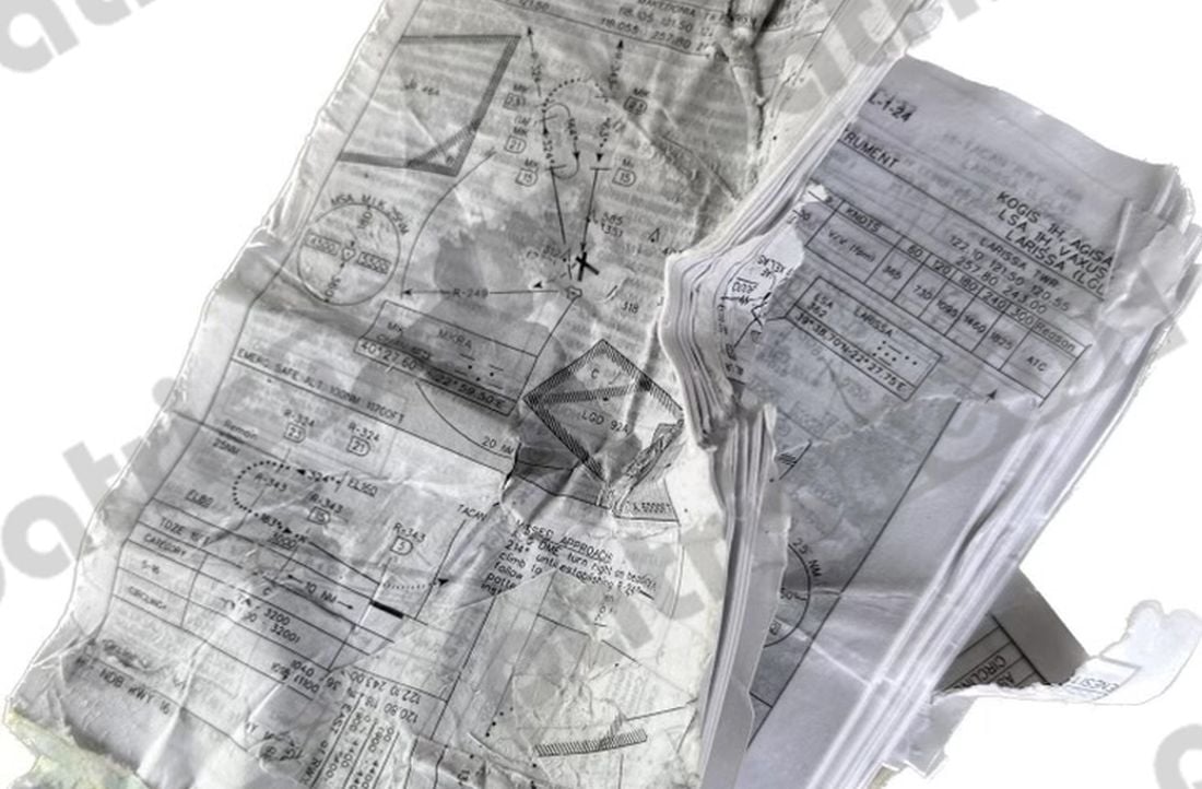 Στη φωτογραφία ντοκουμέντο που εξασφάλισε και σας παρουσιάζει το Patrisnews, από τον τόπο του τραγικού δυστυχήματος, φαίνεται ο χάρτης πάνω στον οποίο αποτυπώνεται η διαδρομή που θα έπρεπε να ακολουθήσουν οι πιλότοι, σε περίπτωση που για τον οποιοδήποτε λόγο χρειαζόταν να προσγειωθούν σε διαφορετικό αεροδρόμιο από αυτό που απογειώθηκαν.