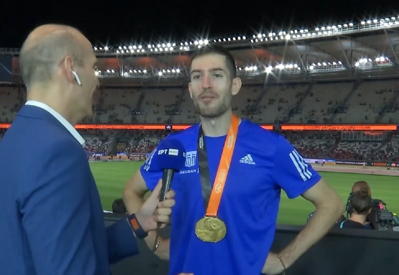Ευδιάθετος μετά την κατάκτηση του χρυσού μεταλλίου στο Παγκόσμιο Πρωτάθλημα της Βουδαπέστης, ο Μίλτος Τεντόγλου χάρισε ακόμη μία από τις απολαυστικές ατάκες του.