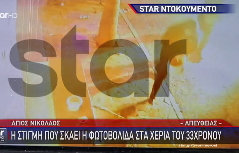 Στο βίντεο ντοκουμέντο που εξασφάλισε η ανταποκρίτρια Γωγώ Αποστολάκη για το μεσημεριανό δελτίο ειδήσεων του Star, αποτυπώνεται η στιγμή που σκάει η φωτοβολίδα, με αποτέλεσμα τον θανάσιμο τραυματισμό του 33χρονου.