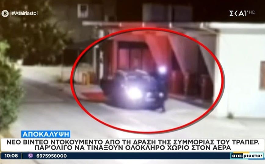 Στο βίντεο που προβλήθηκε από την εκπομπή του ΣΚΑΪ «Αταίριαστοι» φαίνεται να τοποθετείται εκρηκτικός μηχανισμός σε ATM, το οποίο βρίσκεται σε πρόσοψη πρατήριου υγρών καυσίμων.
