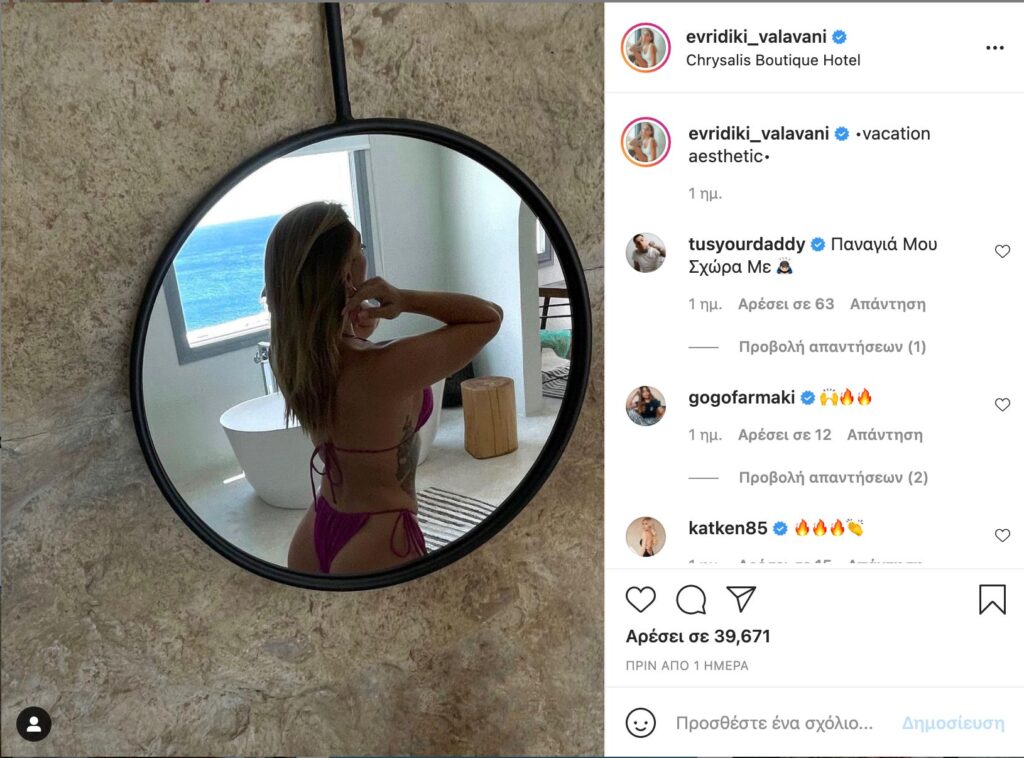 Η αθλητικογράφος τώρα που καλοκαιριάζει φροντίζει να μην έχει παραπονεμένους τους απειράριθμους φαν της στα social media, ανεβάζοντας συνεχώς λήψεις της με μαγιό, από εκείνες που κόβουν την ανάσα. Μάλιστα, στην τελευταία εξ αυτών είναι απλά εκπληκτική, κάνοντας τους ακολούθους της στο instagram να τρελαίνονται.
