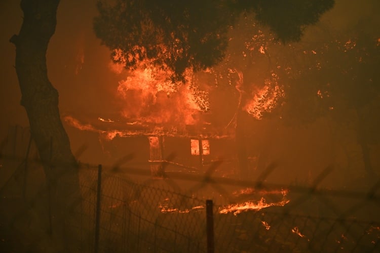 Πλάνα από δελτία ειδήσεων έδειξαν να καίγονται σπίτια στα Βριλήσσια και στο Πάτημα Χαλανδρίου, με την κατάσταση να είναι ιδιαίτερα δύσκολη.
