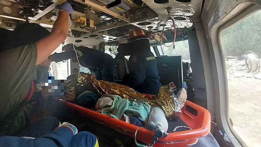 Ο γιατρός από την Αγ. Ρούμελη βρισκόταν στο πλευρό του τραυματία μέχρι τη μεταφορά του, με ελικόπτερο που προσγειώθηκε εντός του φαραγγιού, λόγω της κρισιμότητας της κατάστασης.
