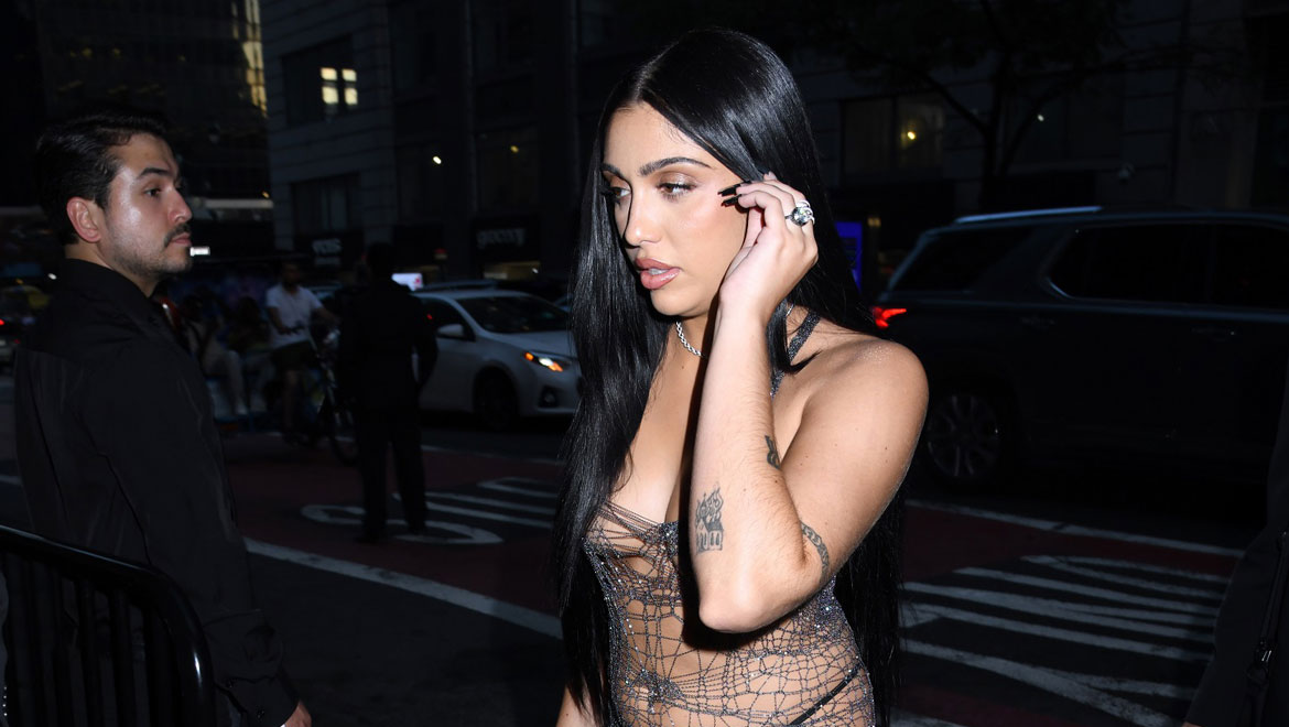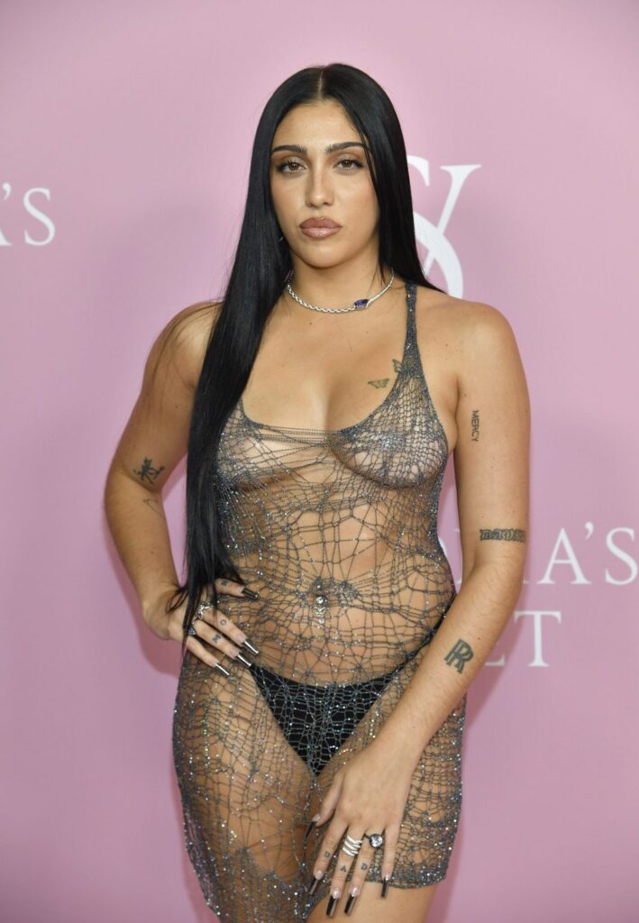 Η Lourdes Leon – όπως θα δείτε παρακάτω-εμφανίστηκε με ένα σούπερ αποκαλυπτικό διχτυωτό φόρεμα, χωρίς σουτιέν, μέσα από το οποίο φορούσε ένα μαύρο σλιπ. To φόρεμα είναι πλεγμένο από μεταλλικό νήμα και ανήκει στη συλλογή της διάσημης Ουκρανής σχεδιάστριας Natalia Fedner.