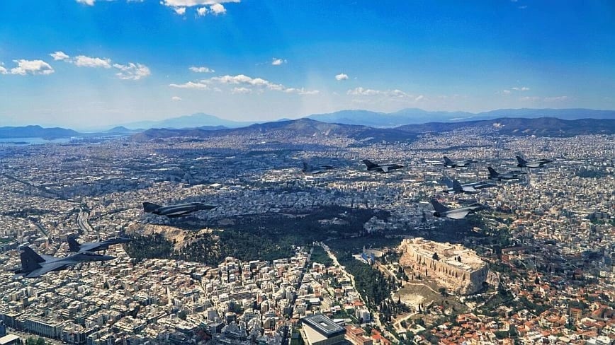 Στο πλαίσιο της Πολυεθνικής Αεροπορικής Άσκησης «ΗΝΙΟΧΟΣ-23», που διεξάγεται από την Δευτέρα 24 Απριλίου 2023 έως την Πέμπτη 4 Μαΐου 2023, πραγματοποιήθηκε την Παρασκευή 28/4 συμβολική πτήση σχηματισμού Μαχητικών Αεροσκαφών πάνω από τον ιερό βράχο της Ακρόπολης.
