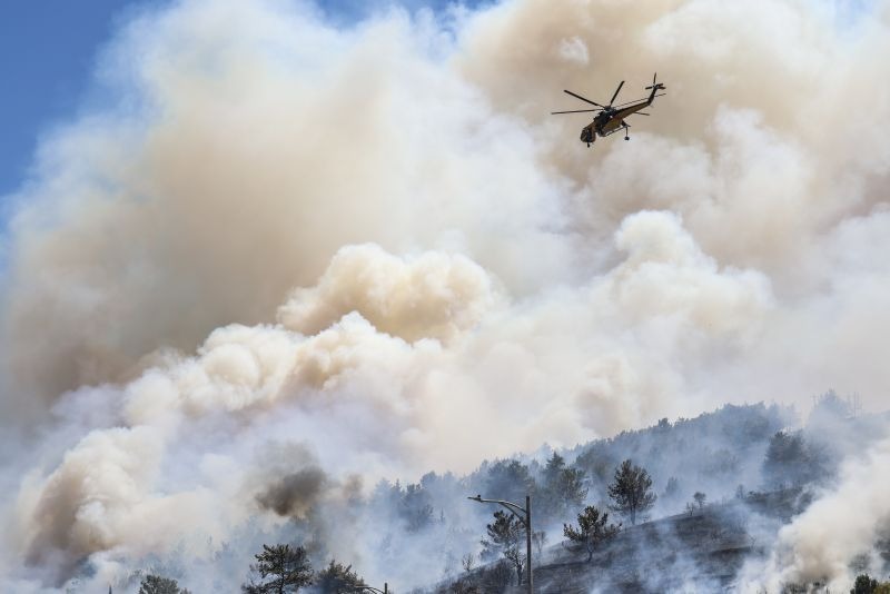 Η φωτιά κατακαίει δασική έκταση με πευκοδάσος και χαμηλή βλάστηση και επεκτείνεται με ταχύτητα λόγω των καιρικών συνθηκών, κατευθυνόμενη απειλητικά προς το Λωβοκομείο Χίου. Από τη Γενική Γραμματεία Πολιτικής Προστασίας, το νησί είχε ήδη τεθεί στη ζώνη υψηλού κινδύνου για πυρκαγιά (κατηγορία 4) για τη σημερινή ημέρα.