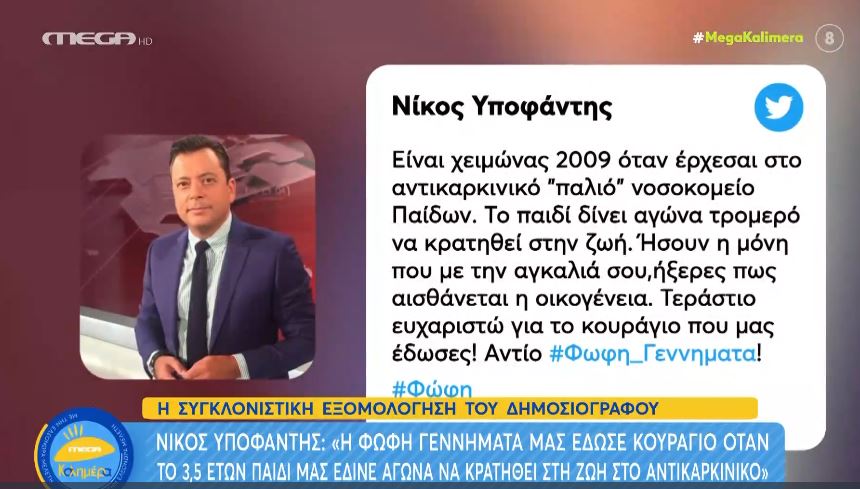 Μια συγκλονιστική ανάρτηση έκανε ο δημοσιογράφος, Νίκος Υποφάντης, αναφερόμενος στην Φώφη Γεννηματά και στην περιπέτεια υγείας που πέρασε με το παιδί του.