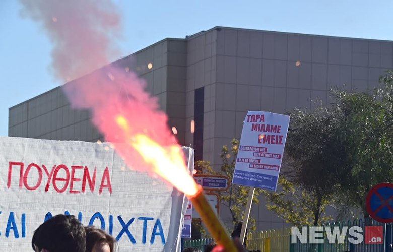 Άτομα τα οποία είχαν παρεισφρήσει στην πορεία των μαθητών έχουν ξεκοπεί από τον κύριο όγκο της διαδήλωσης και βρίσκονται στο πάρκο το οποίο συνορεύει με το υπουργείο Παιδείας.