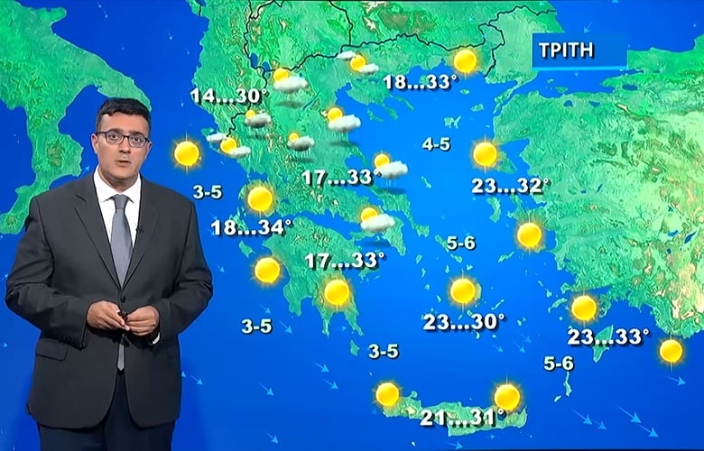 Δεν θα λείψουν πάντως μεσημεριανές μπόρες στα βουνά και κάποιες πρόσκαιρες βροχές πολύ νωρίς το πρωί κυρίως στη Θεσσαλία, σύμφωνα με τον μετεωρολόγο της ΕΡΤ, Π. Γιαννόπουλο.